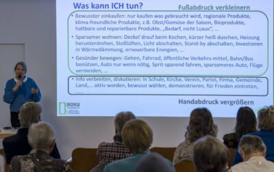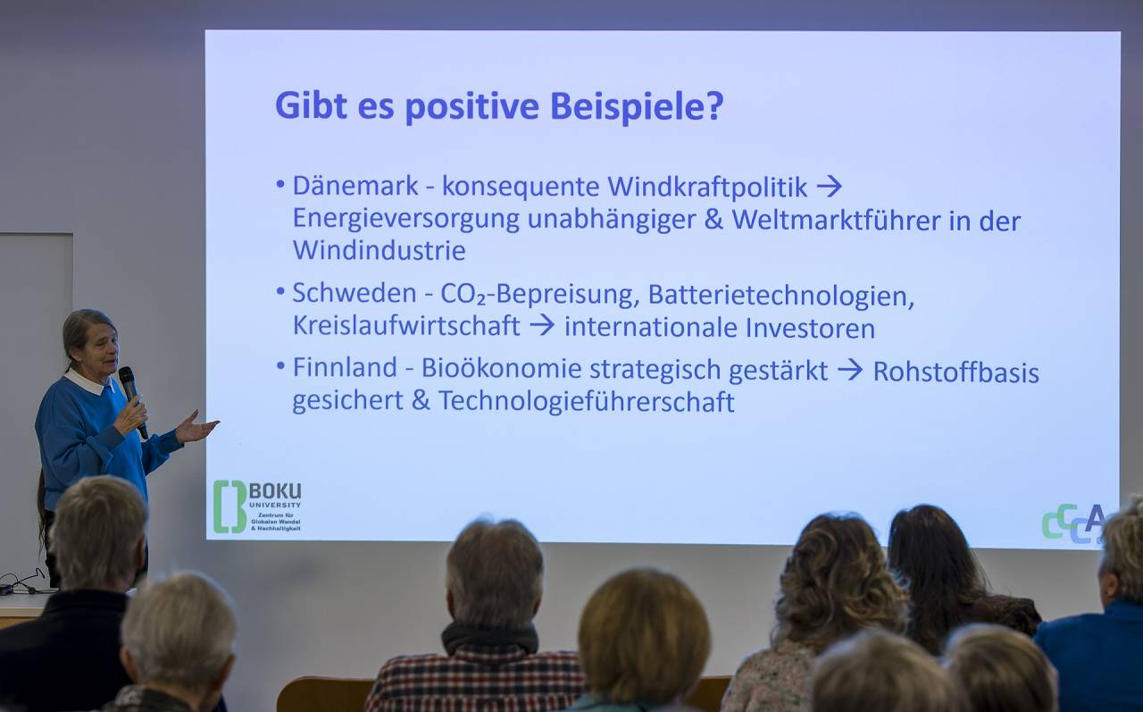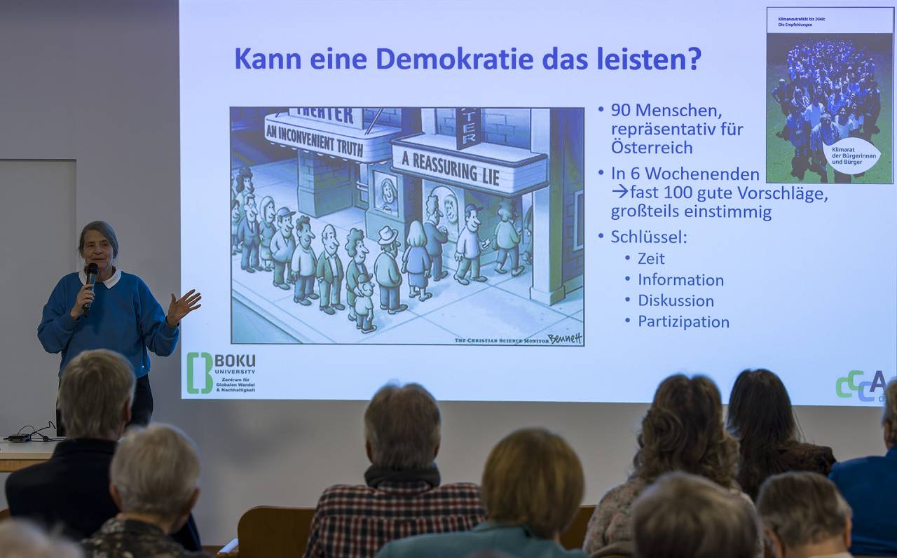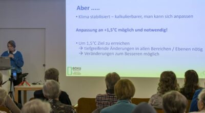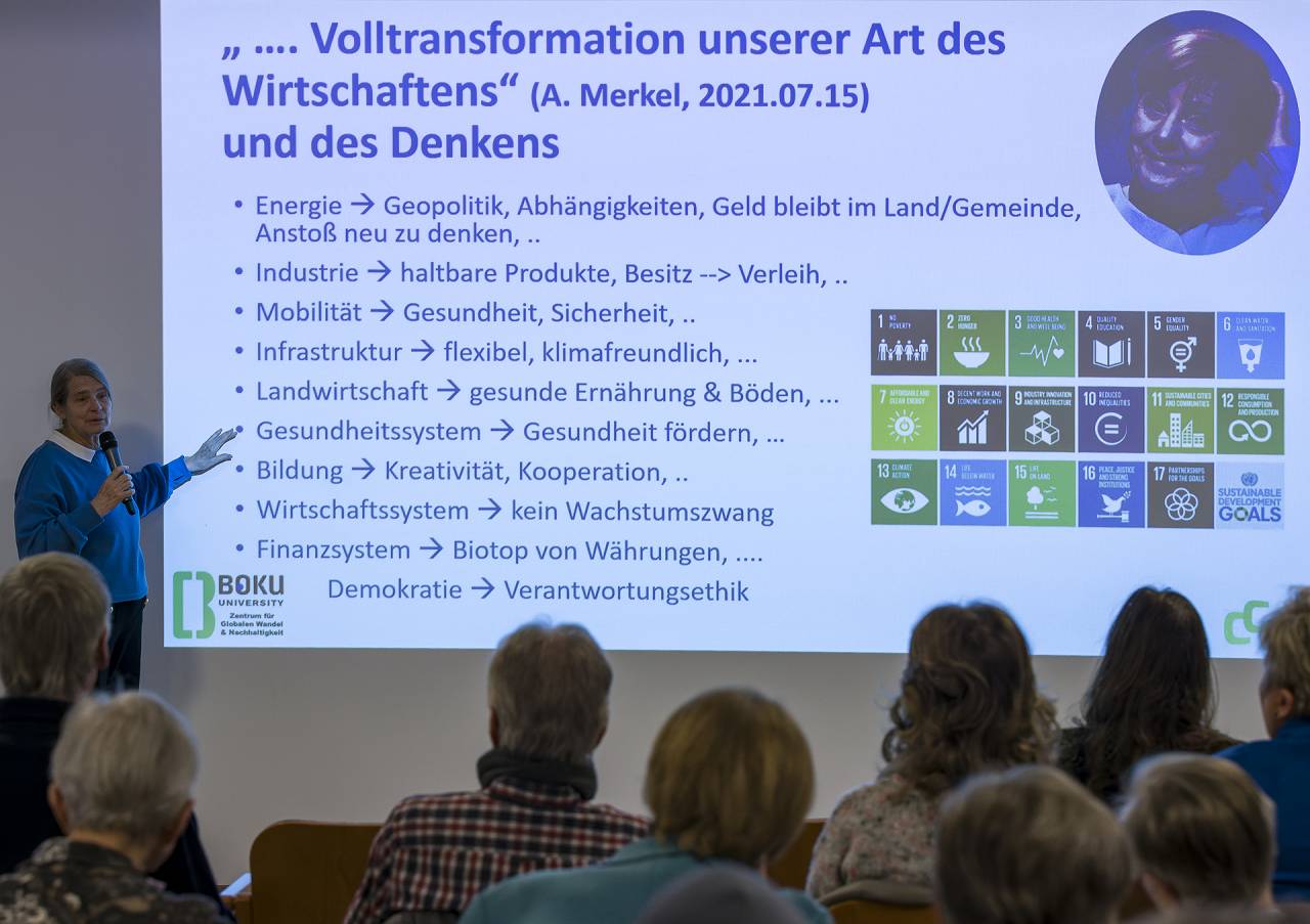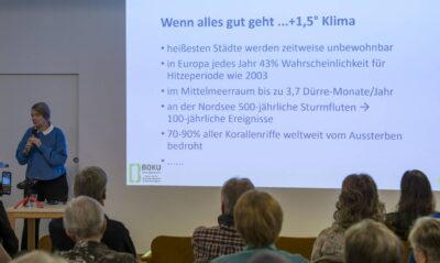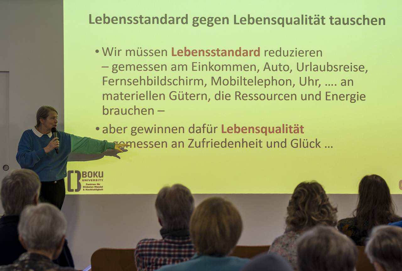 Bilder vom Vortrag / Gespräch mit Em. o. Univ. Prof. Dr.h.c. Frau Dr.in Helga Kromp-Kolb am 22.11.2025