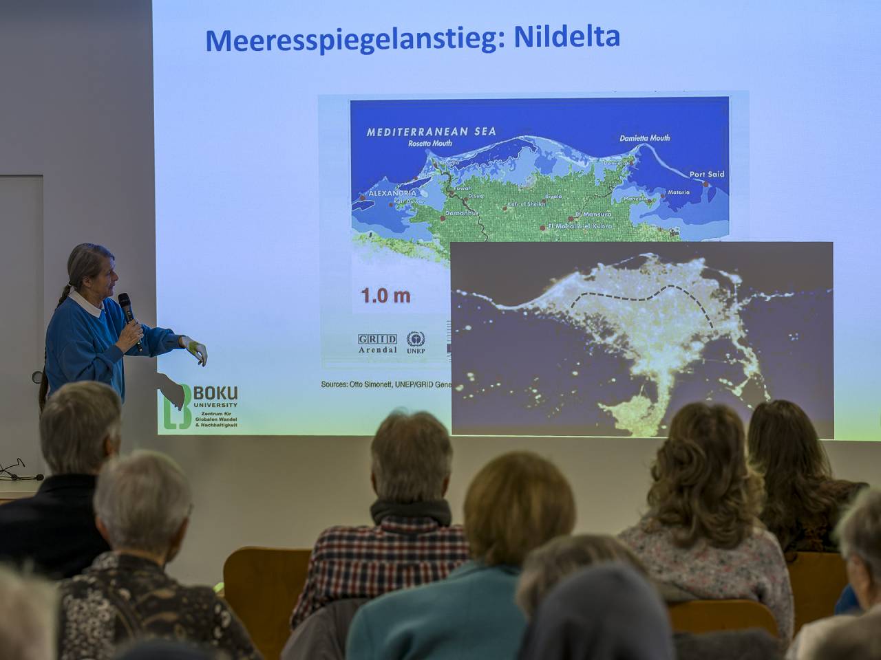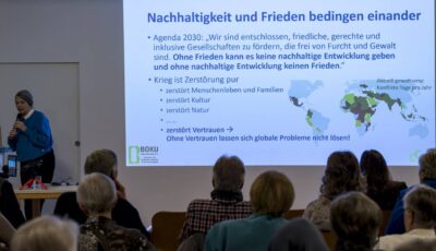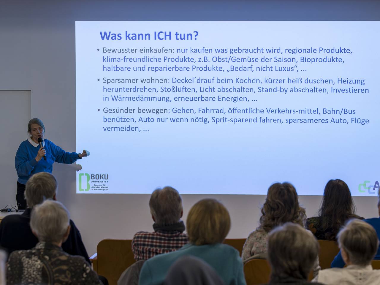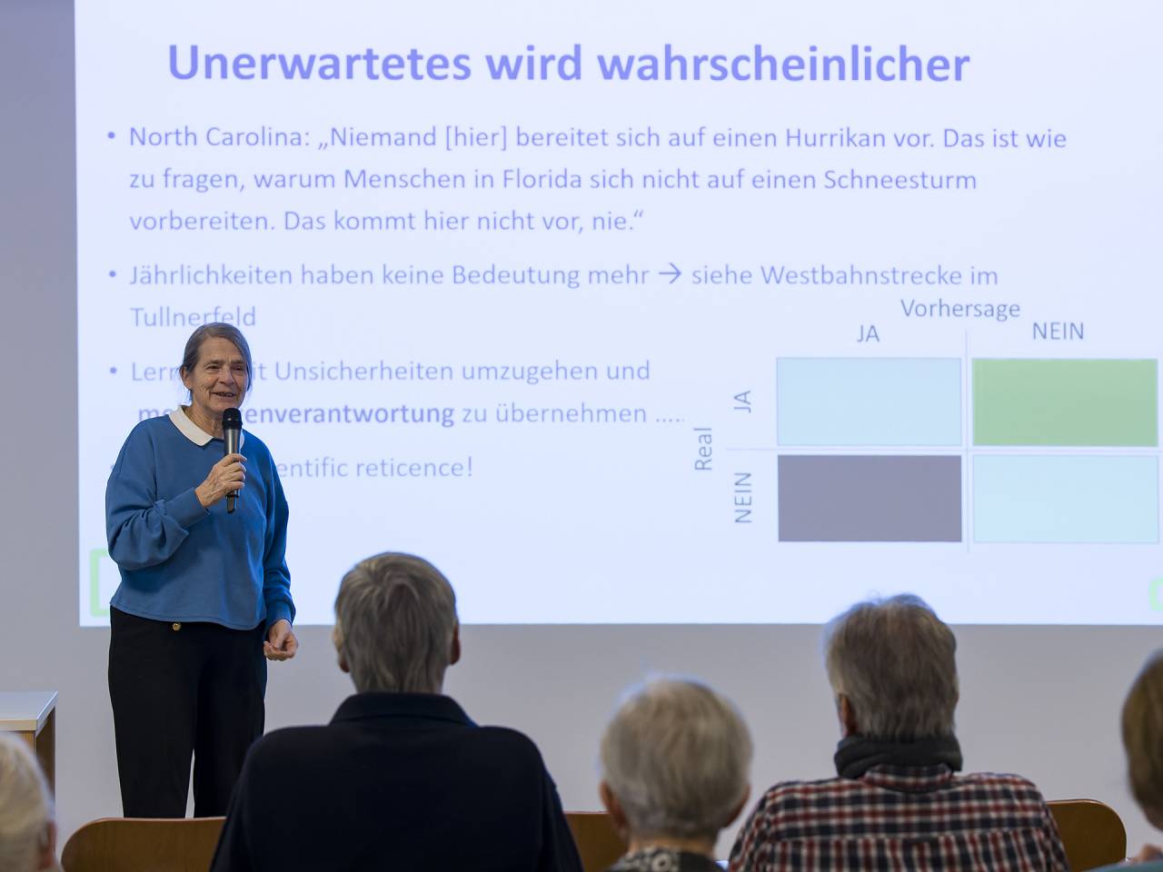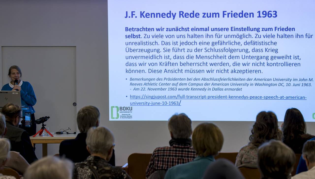 Bilder vom Vortrag / Gespräch mit Em. o. Univ. Prof. Dr.h.c. Frau Dr.in Helga Kromp-Kolb am 22.11.2025